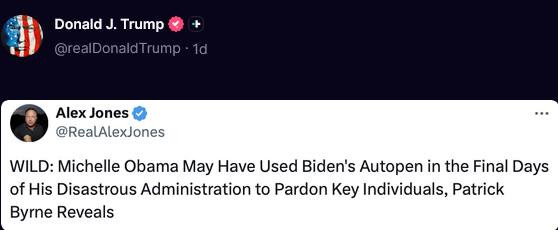 Trump says Biden had no knowledge of what was signed with the "autopen," but the "people sitting around the beautiful Resolute desk knew exactly what it was, and those people are guilty, in my opinion, of a major crime."
