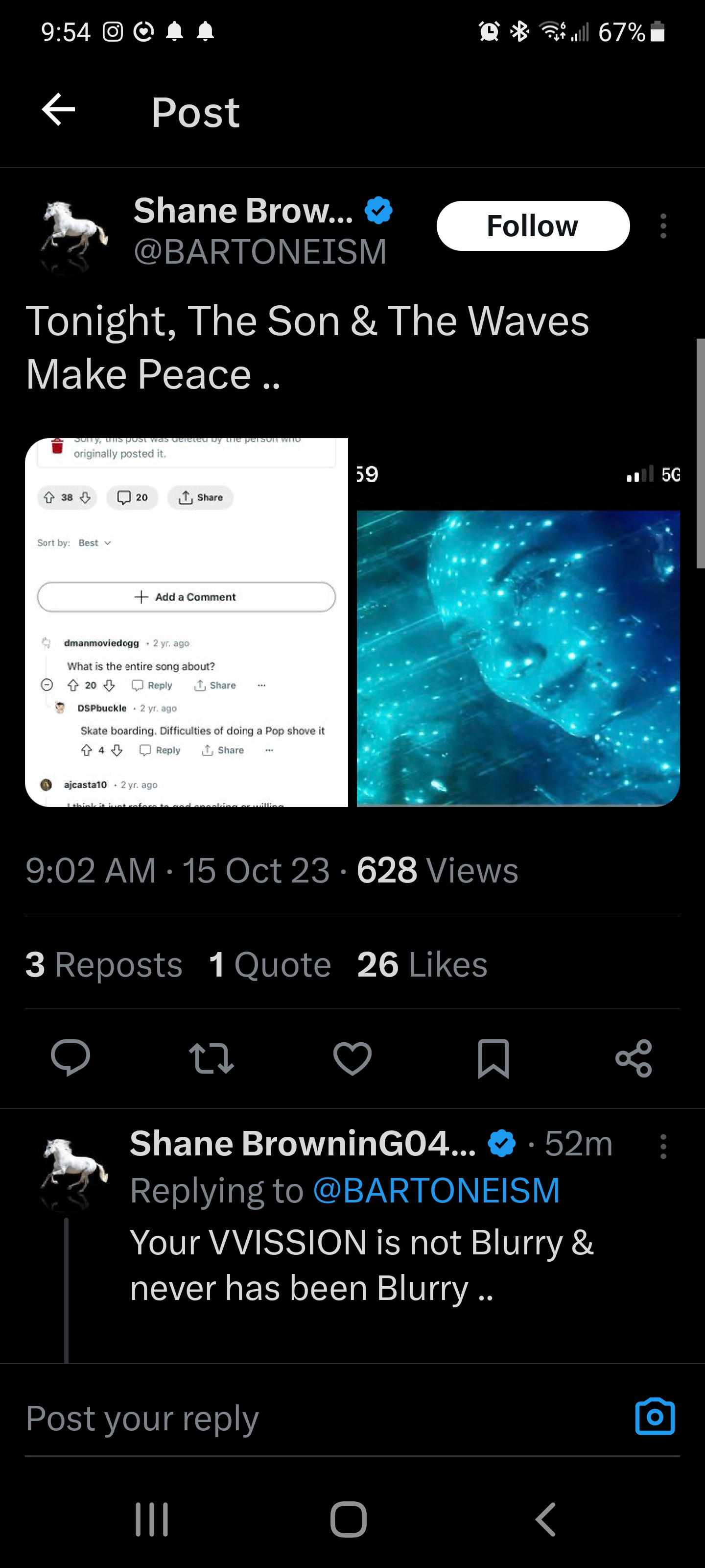 The song lyrics he's posting about here are "My Own Summer" by one of my favorite bands ever- DEFTONES