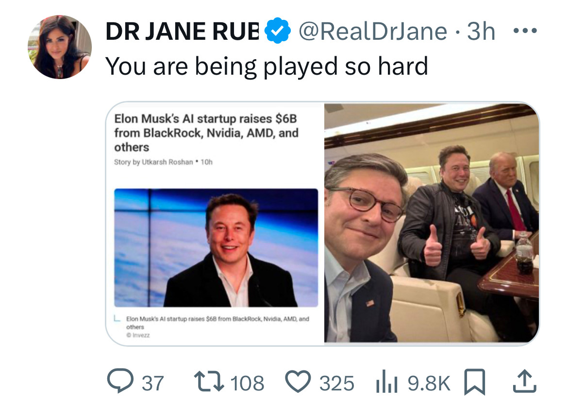 This post may be fake. I don't see this post on Elon's X account.
