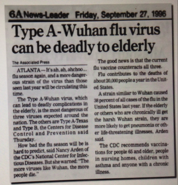 Type A #Wuhan FLU #Virus September #27 1996 can be deadly to elderly