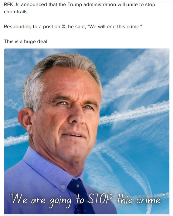 I would like to see that post. I don’t recall any communication about chem trails from this administration. Maybe I missed it.