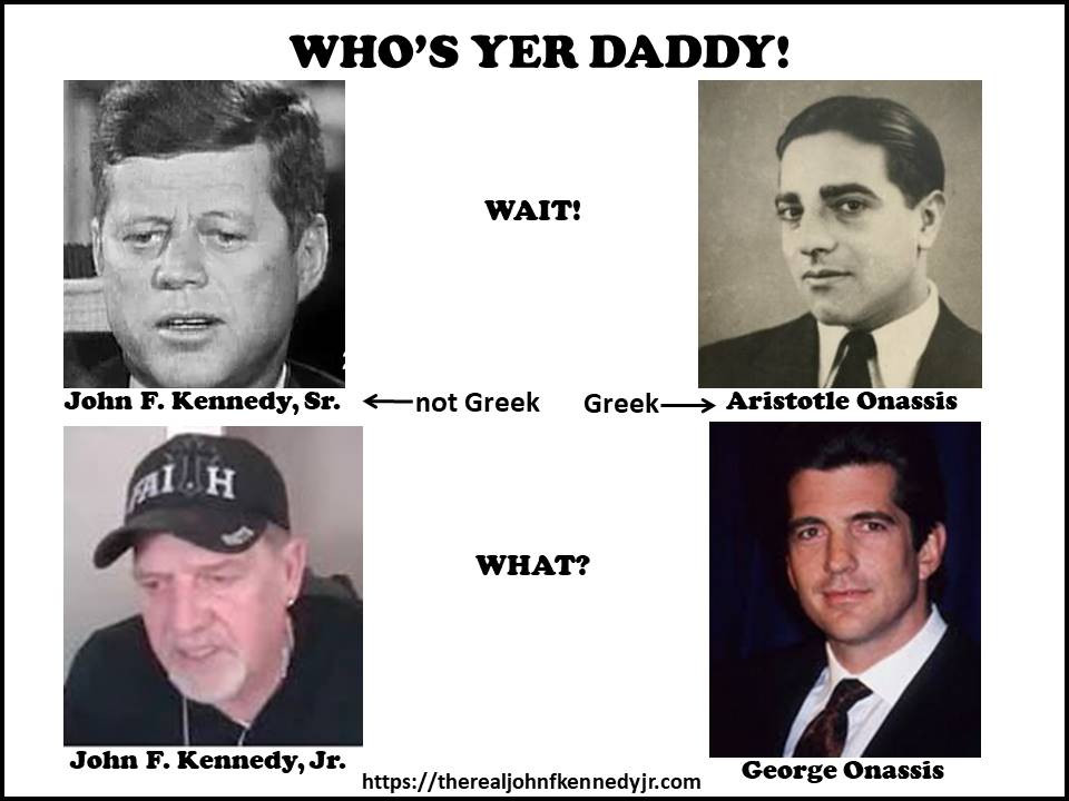i see onasis in the alleged jr not the other way around.. there is a correlation with onasis however as jackie ended up marrying him (money). if she was a tranny then neither were hers.. jfk and jr resemble each other strongly. onasis and alleged jr resemble each other.. not accepting this conspiracy.. at all..