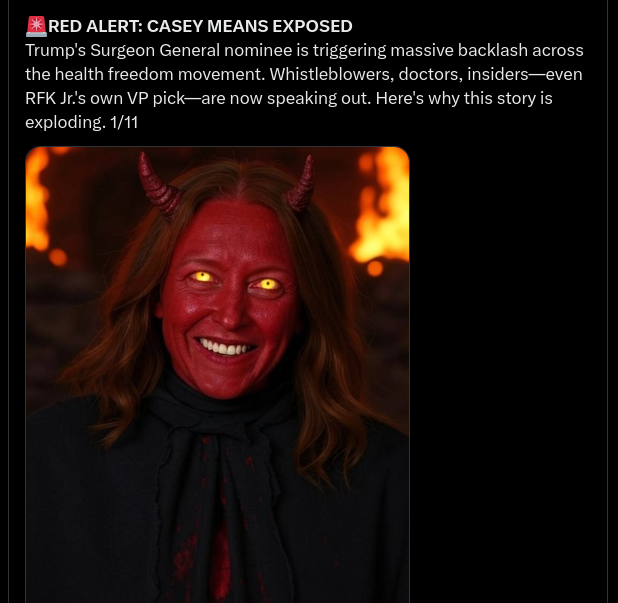 So the Question is will President Trump’s Surgeon General nominee, Casey Means MD WALK the WALK with all that TALK America