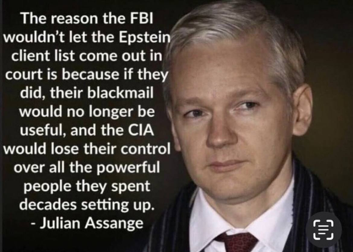 “The reason the FBI wouldn't let the Epstein client list come out in court is because if they did, their blackmail would no longer be useful, and the CIA would lose their control over all the powerful people they spent decades setting up.”