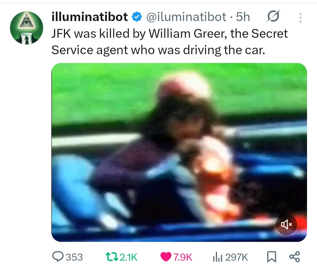 Add that JFK was hit by more than one round but the 100% fatal head-shot came from the Driver.