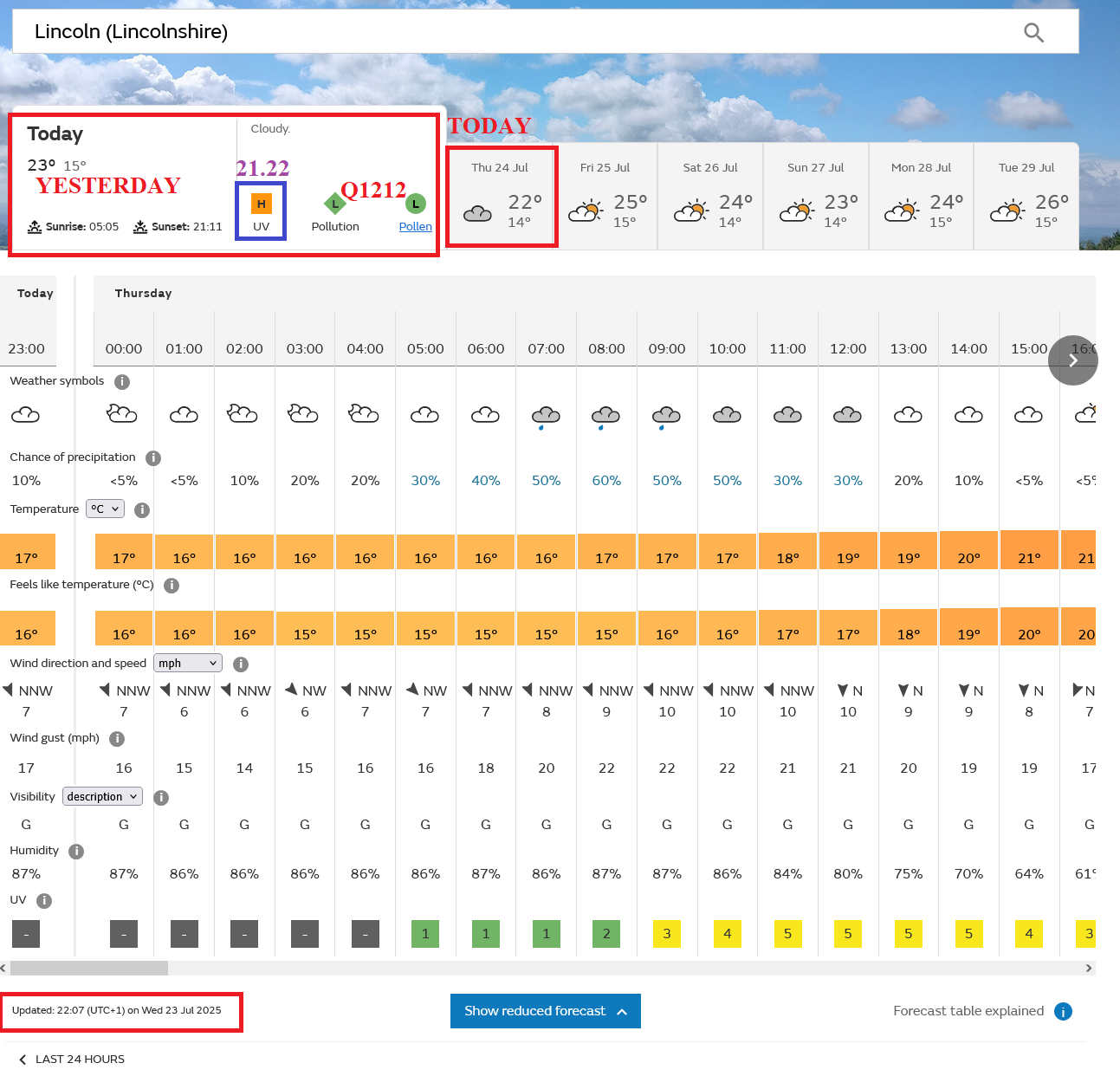 Last night I checked the weather for my area, which comes from RAF Waddington near Lincoln. #Military Clear night. Sunny day.
