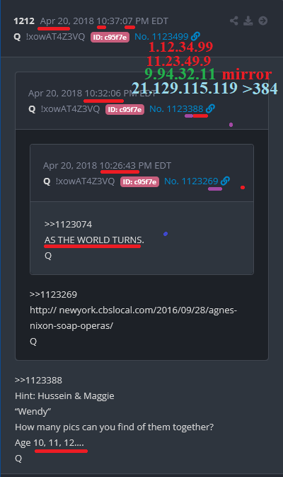 #Q1212 1212 Apr 20, 2018 10:37:07 PM EDT #420 #Santa #o7 #jfk #AsTheWorldTurns #QEII #288 #1437