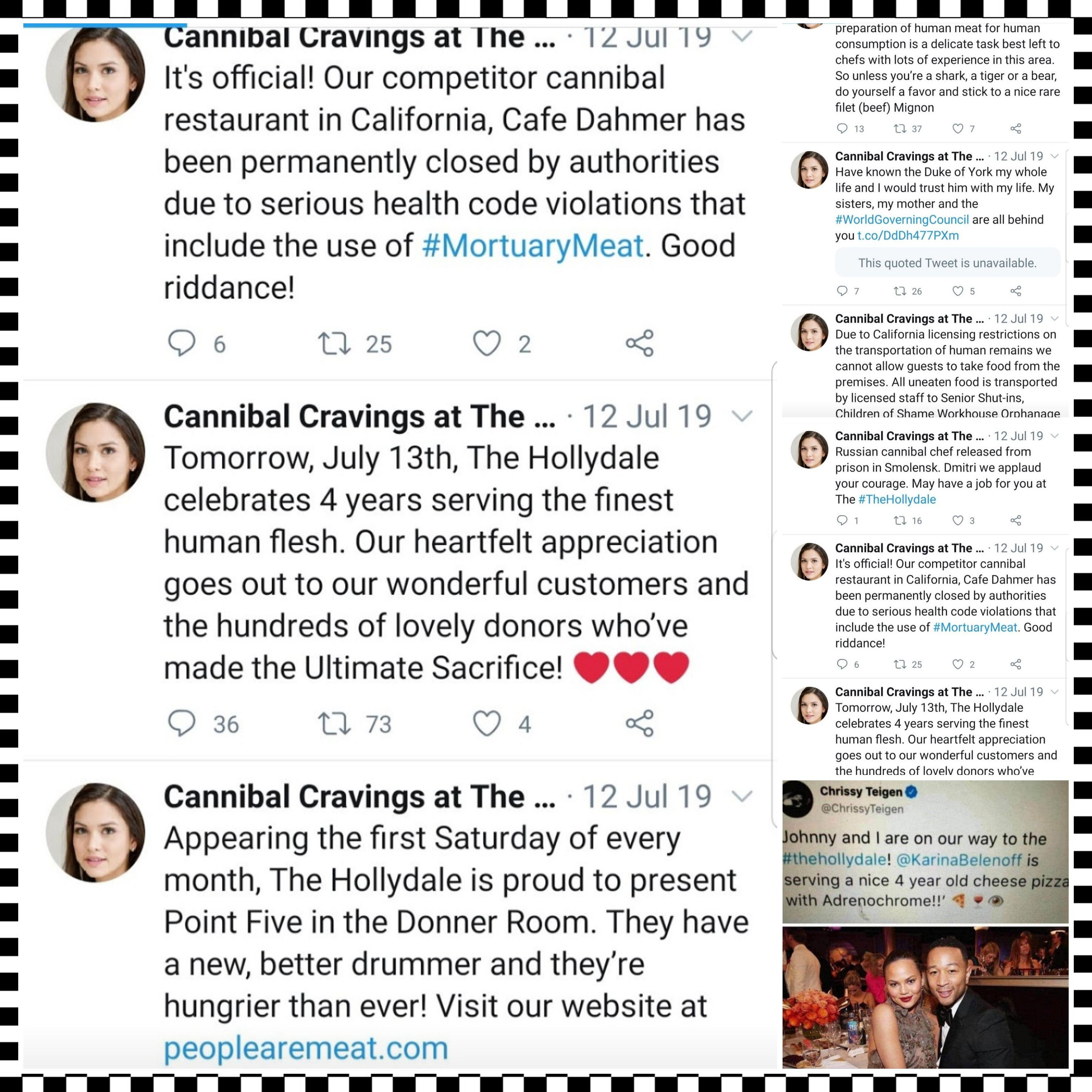 Everytime I'm sure thankful you preserved those images. I didn't know how to do screenshots back then, bein' a low-tech Fella, and those links all disappeared as People's accounts were suspended/deleted and the Internet was wiped such that links went to oblivion. I had several computers compromised (by the Deep State) and lost all the links anyways, but Cannibal Club was hosting BIG FAMOUS PERPS including Prince Charlatan.