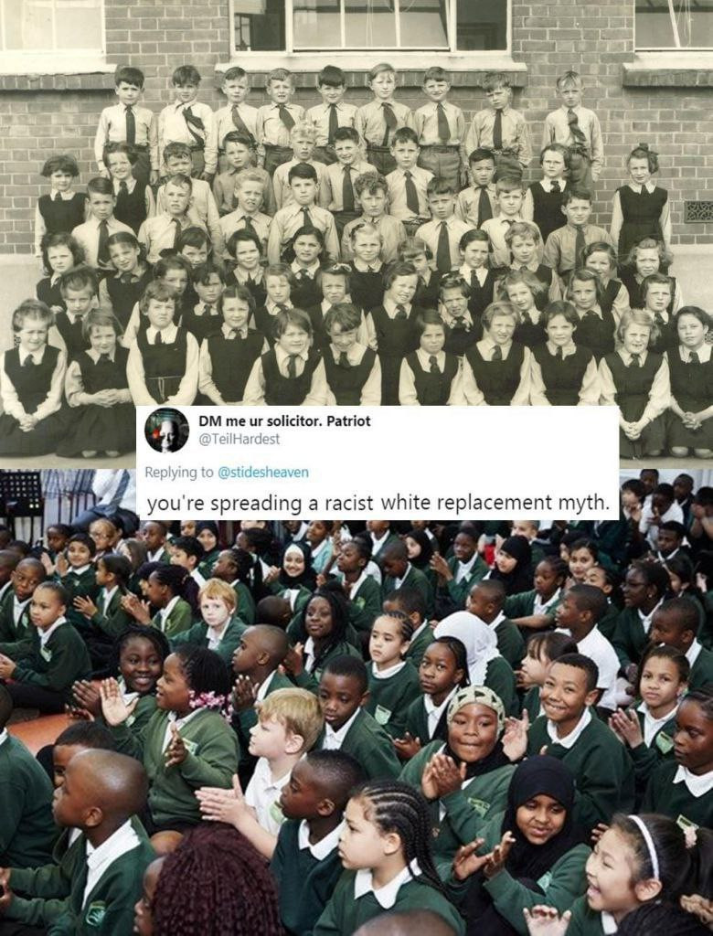TellHardest is spreading OBVIOUS LIES, by calling a pair of photos which clearly illustrate OBVIOUS white replacement a "myth," and by characterizing the speaker and/or message as "racist" because he doesn't like that the message is OBVIOUSLY true.