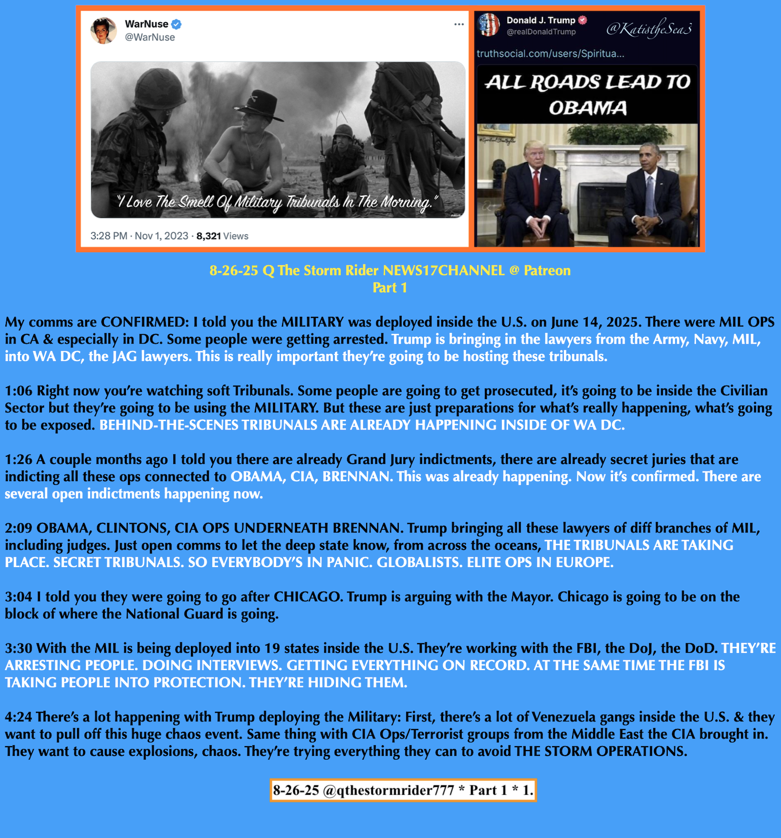 8-26-25 🇺🇸 Q The Storm Rider @ Patreon Part 1