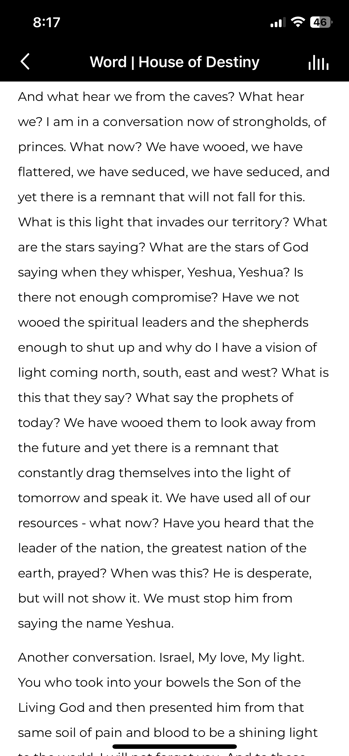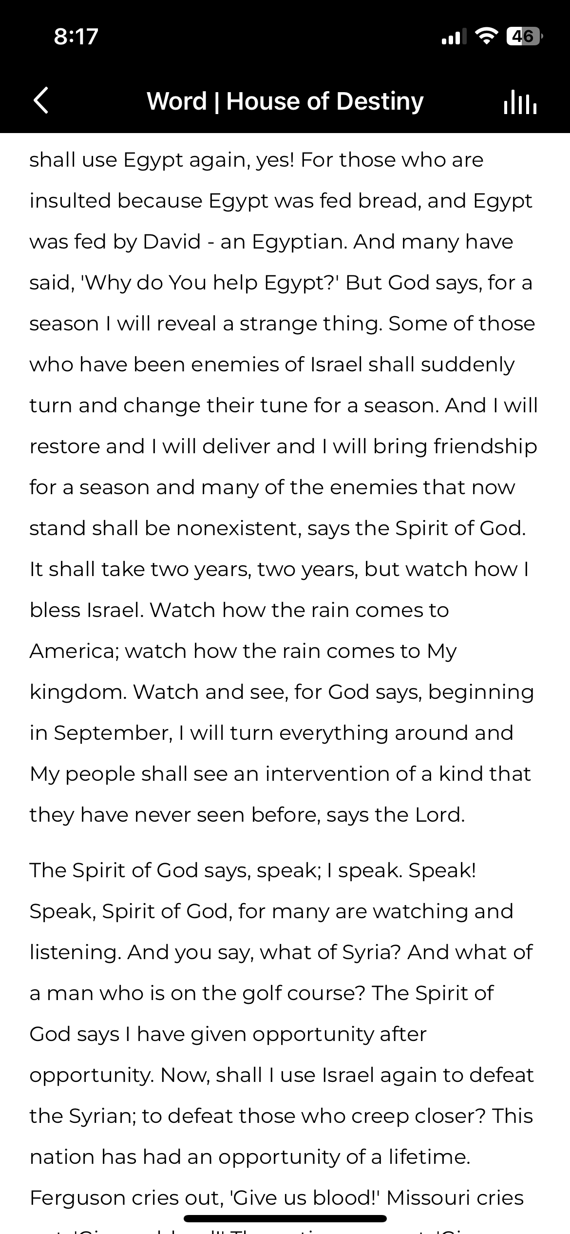 Let’s hear the entire prophetic message. Notice that Israel and America are a big part of the message and blessings for them Israel and the USA to come …
