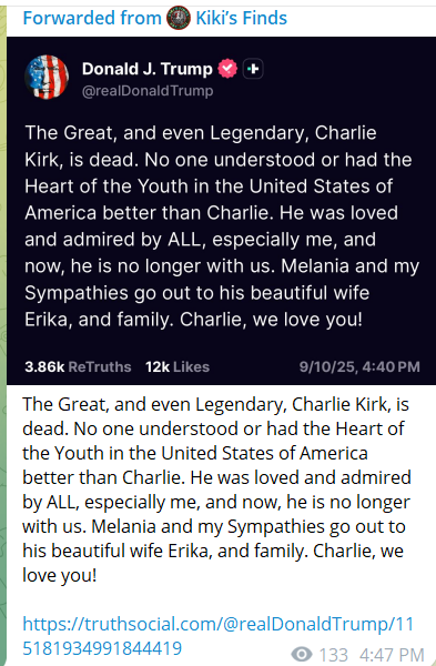 π» Wonderful, brilliant Charlie Kirk has been shot π