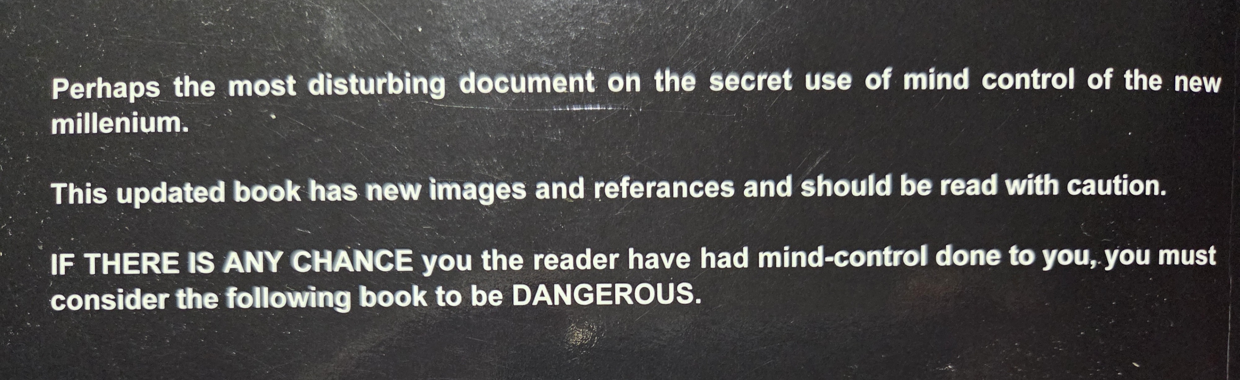 The warning is on the back cover of the book, so people receive fair warning before they even open it.