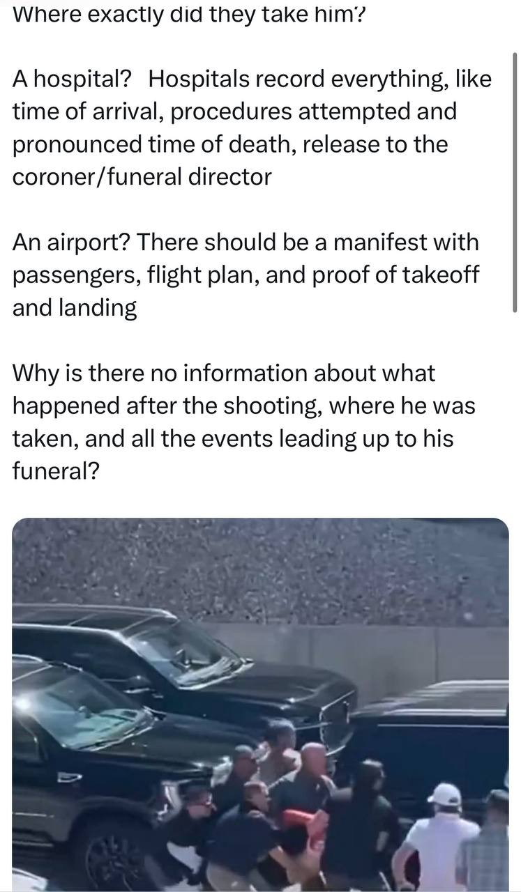I watched a video that included the picture you posted. above. Why did they shove him in the back seat of a black SUV instead of putting him in one of the ambulances?
