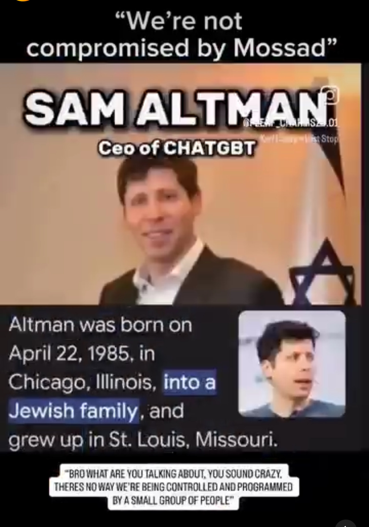 Altman was born on April 22, 1985, in Chicago, Illinois, into a Jewish family, and