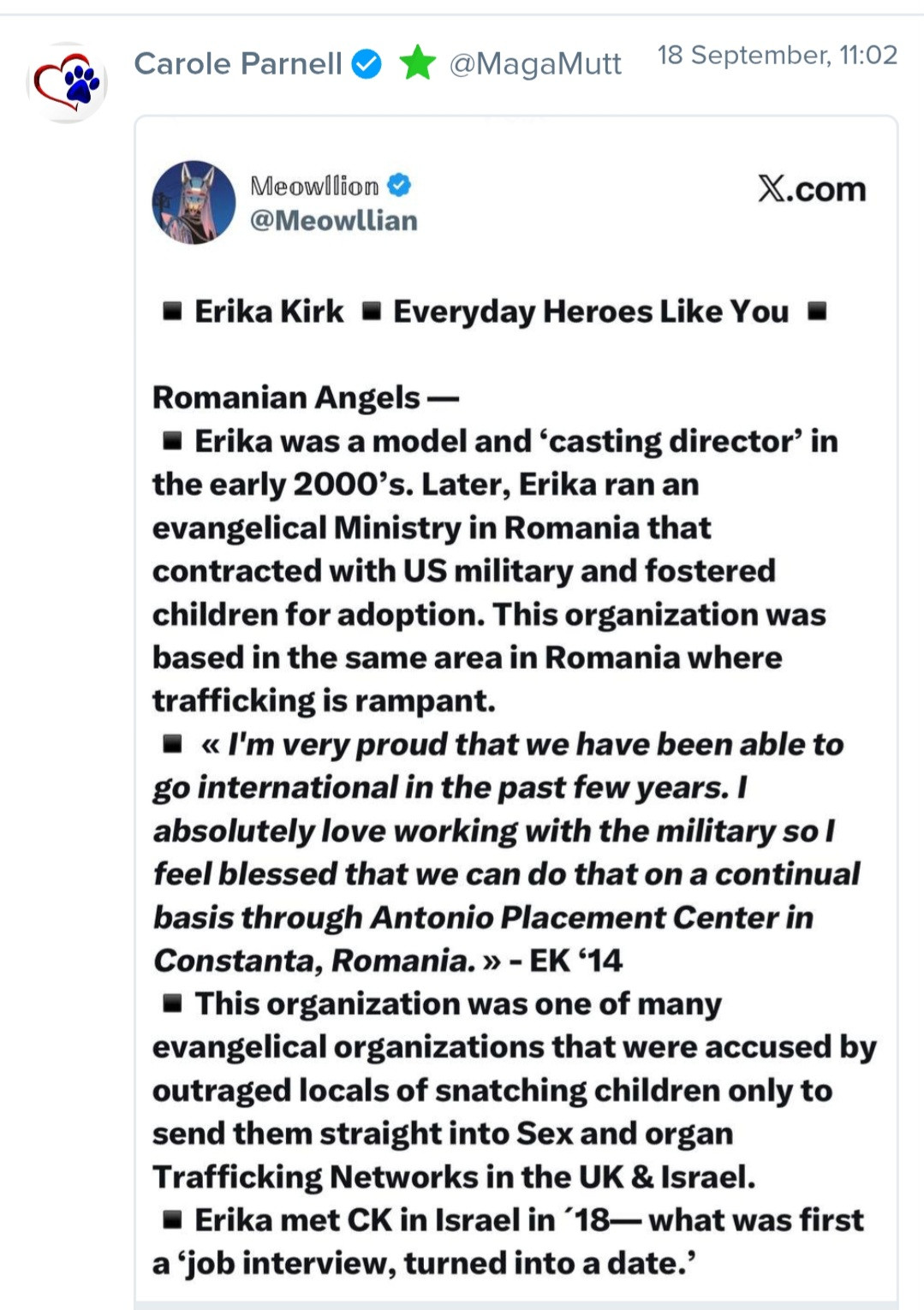 Who is Erika Kirk and what was she allegedly involved in before she met Charlie?