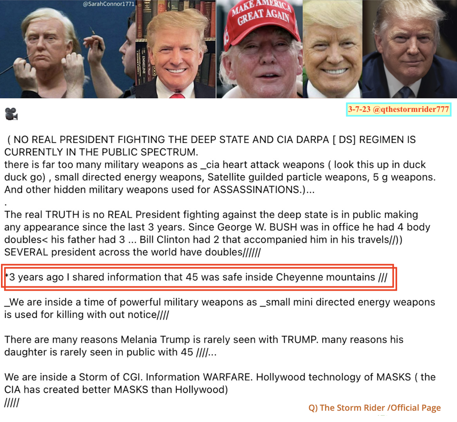 And even more Ironic, I read an article that said the real Donald J. Trump died in 1989 (could be 1998 I'm old and forgetful.) So WHO really knows outside of the Team.