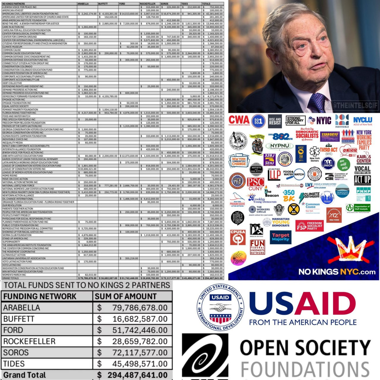 The No Kings Rally was completely organic... except for $294,487.641 of Soros, Buffett, Ford, Arabella, Tides and Rockefeller money.