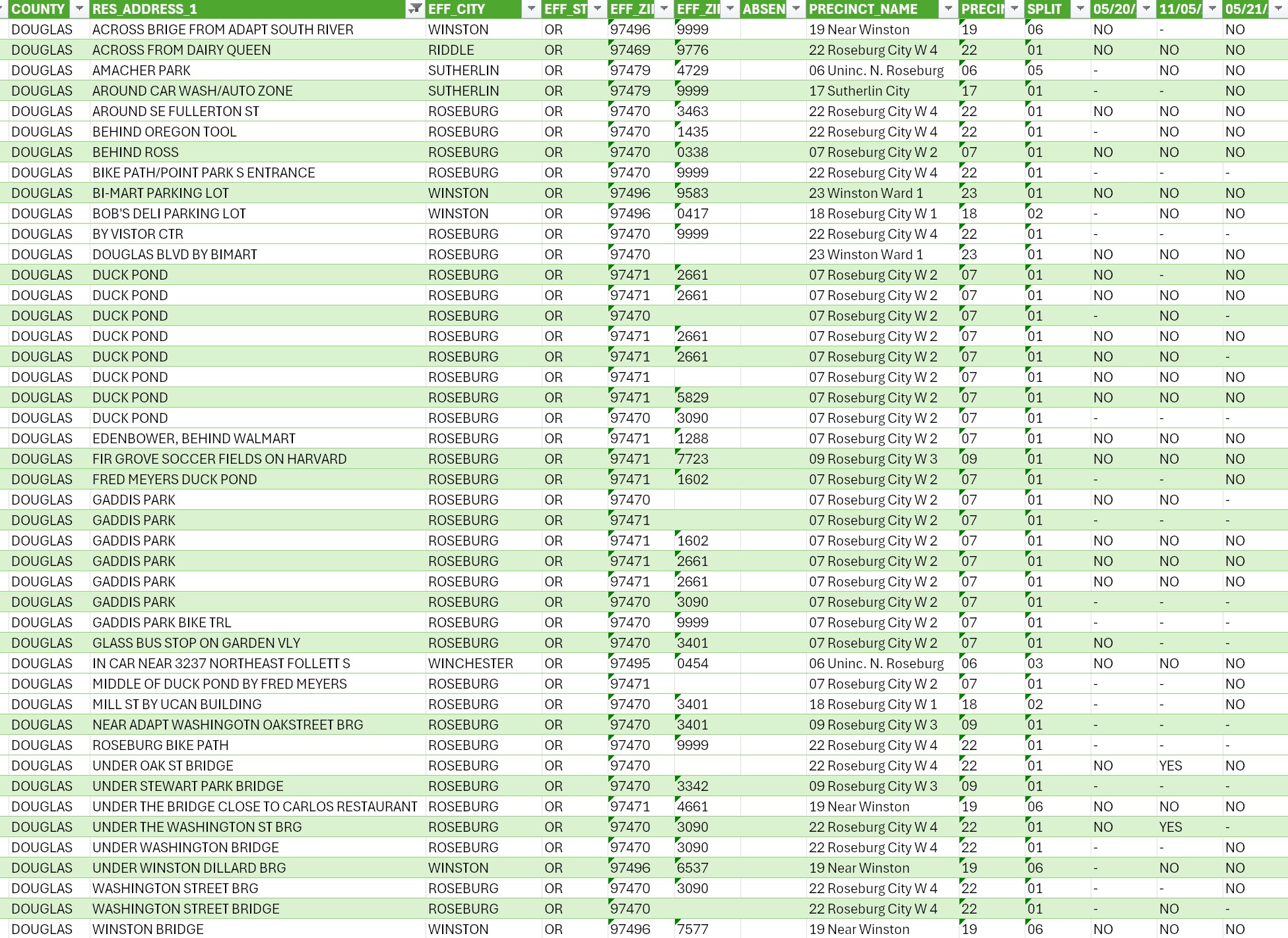 Douglas County Oregon voter records......