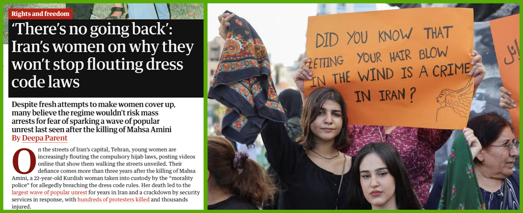The biggest Death Sentence offense I hear was if ANYONE hoisted their real Iranian Flag, and People are now waiving them everywhere.