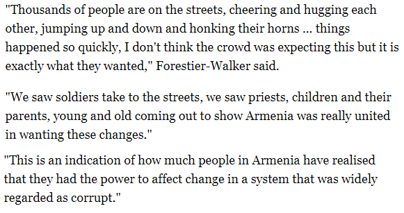 "Thousands of people are on the streets, cheering and hugging each other, jumping up and down and honking their horns … things happened so quickly…"
