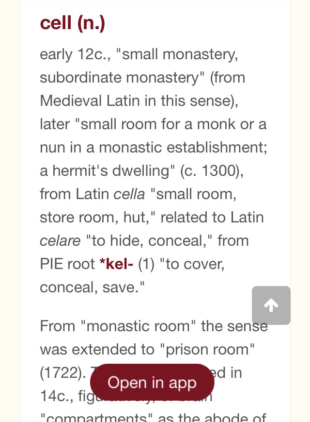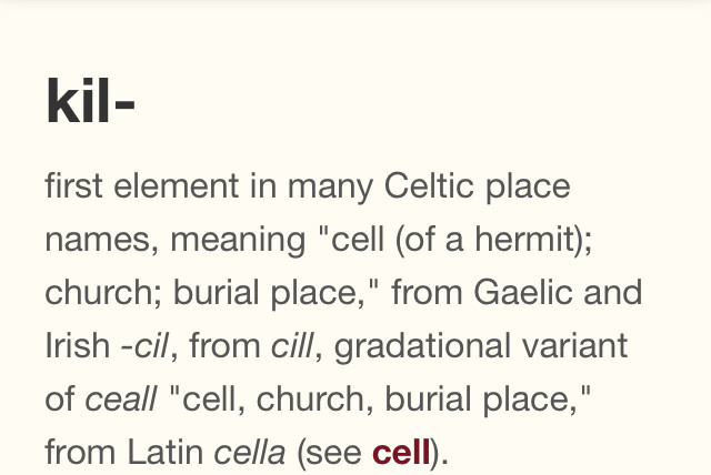 kill (kel or kil or cell) -water / to cover or conceal / graduation variant / prison