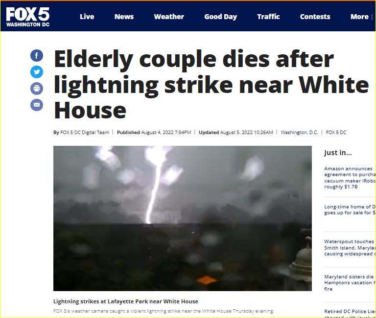 Elderly couple dies after lightning strike near White House